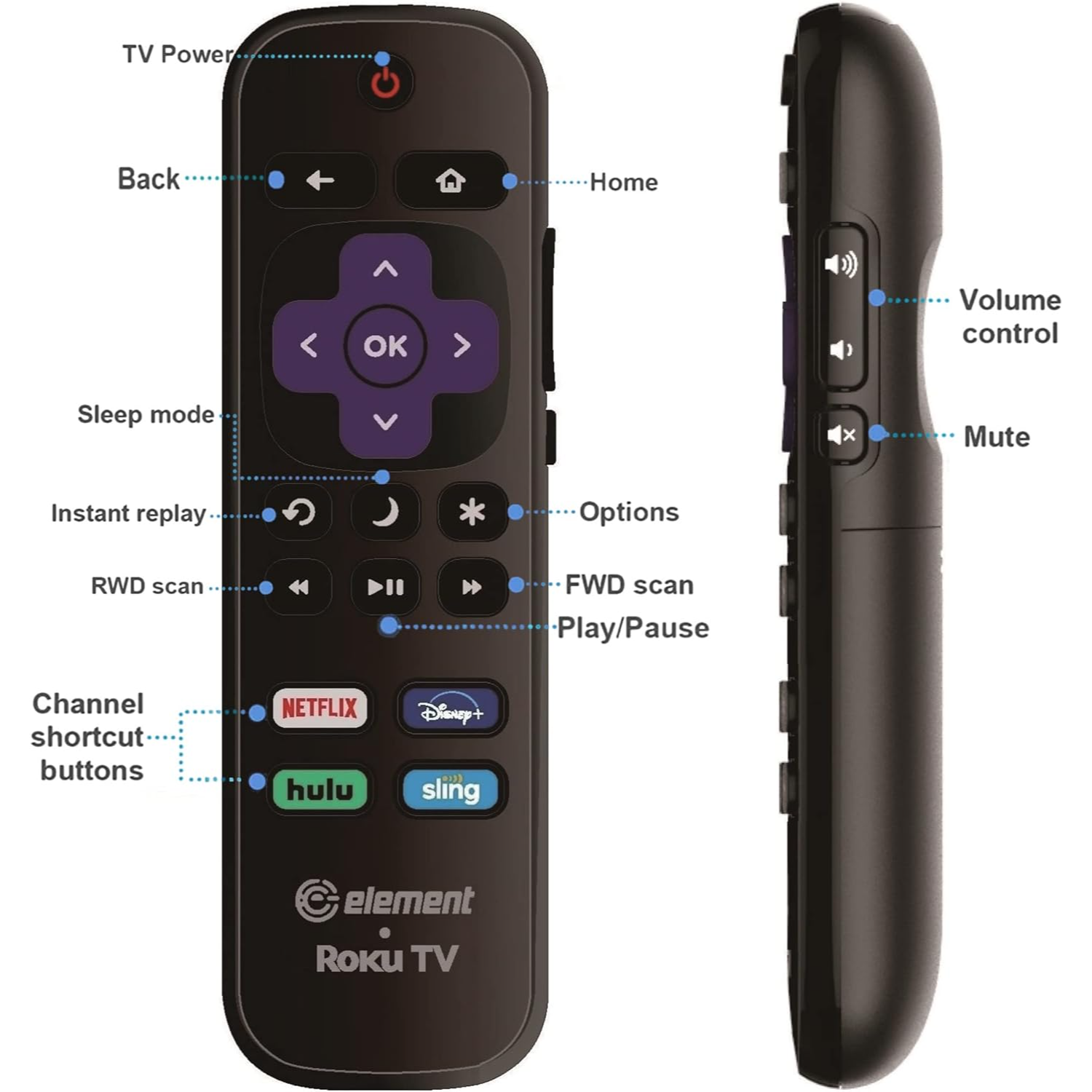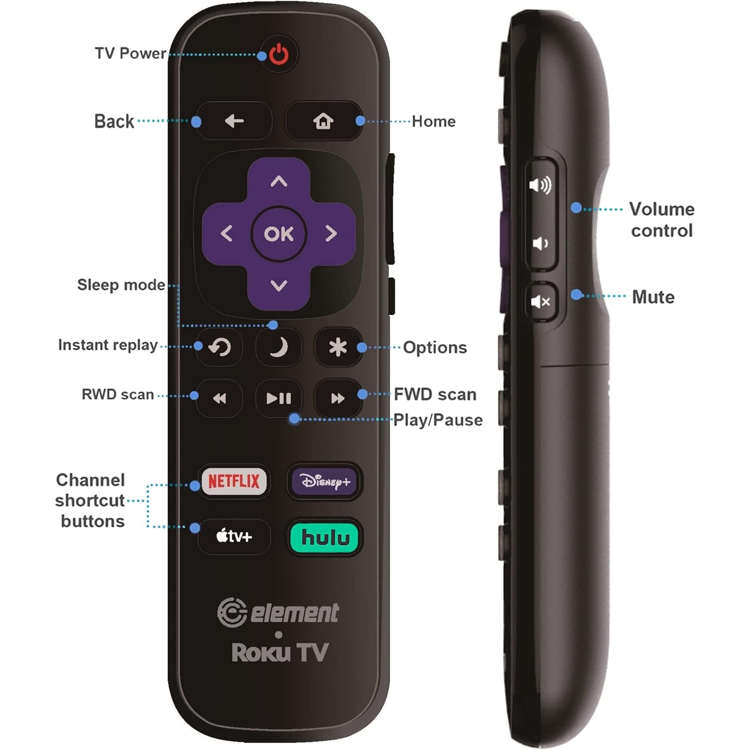 OEM Replacement Element Roku TV Remote Control【Only Works with Element Roku TV, Not for Roku Stick and Roku Box】